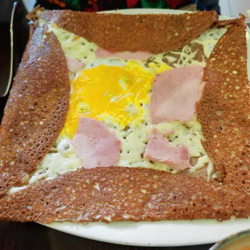 Nous préparons des galettes bretonnes avec la farine de sarrasin IGP du "Moulin de la Fatigue".